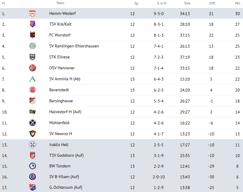 Insbesondere an vorderster Front kommt die Elf von Stefan Staar nicht zur Entfaltung, sodass nur 13 erzielte Treffer auf das Konto des VfR Germ. Ochtersum gehen. Der bisherige Ertrag des Heimteams in Zahlen ausgedrückt: ein Sieg, zwei Unentschieden und neun Niederlagen. Der VfR Germ. Ochtersum entschied kein einziges der letzten zehn Spiele für sich.